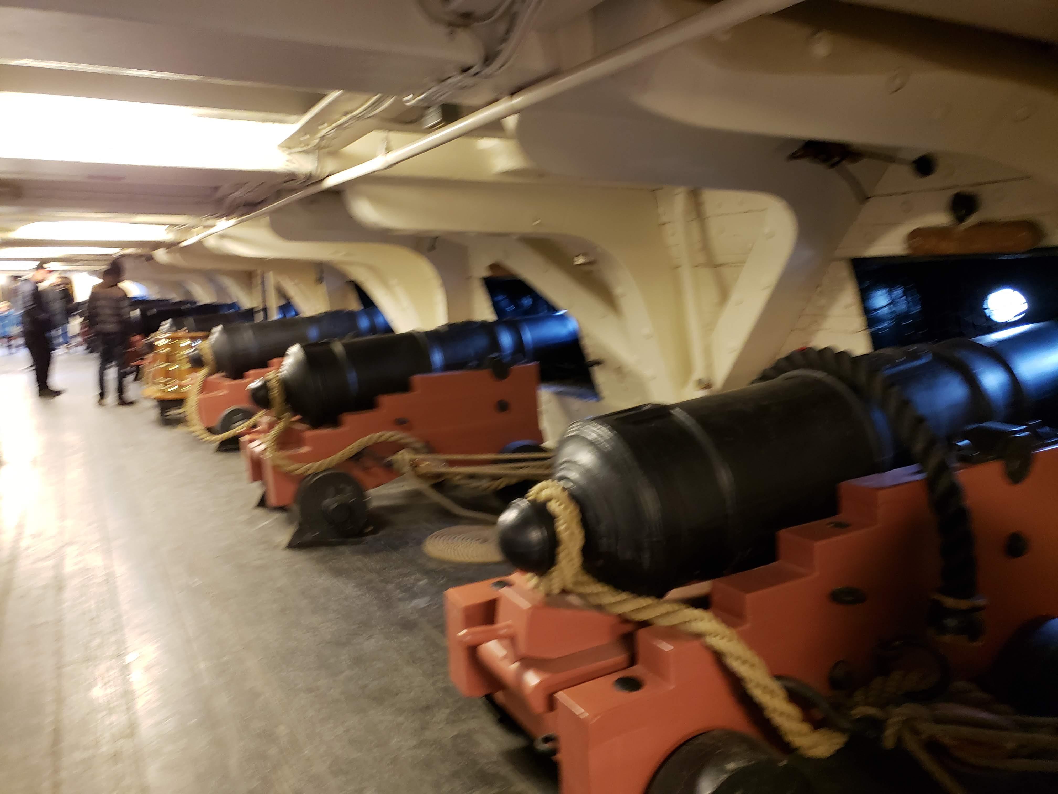 배에서 설명을 해주는 해군들을 볼 수 있고, 갑판 아래로 내려가면 내부도 둘러볼 수 있습니다.