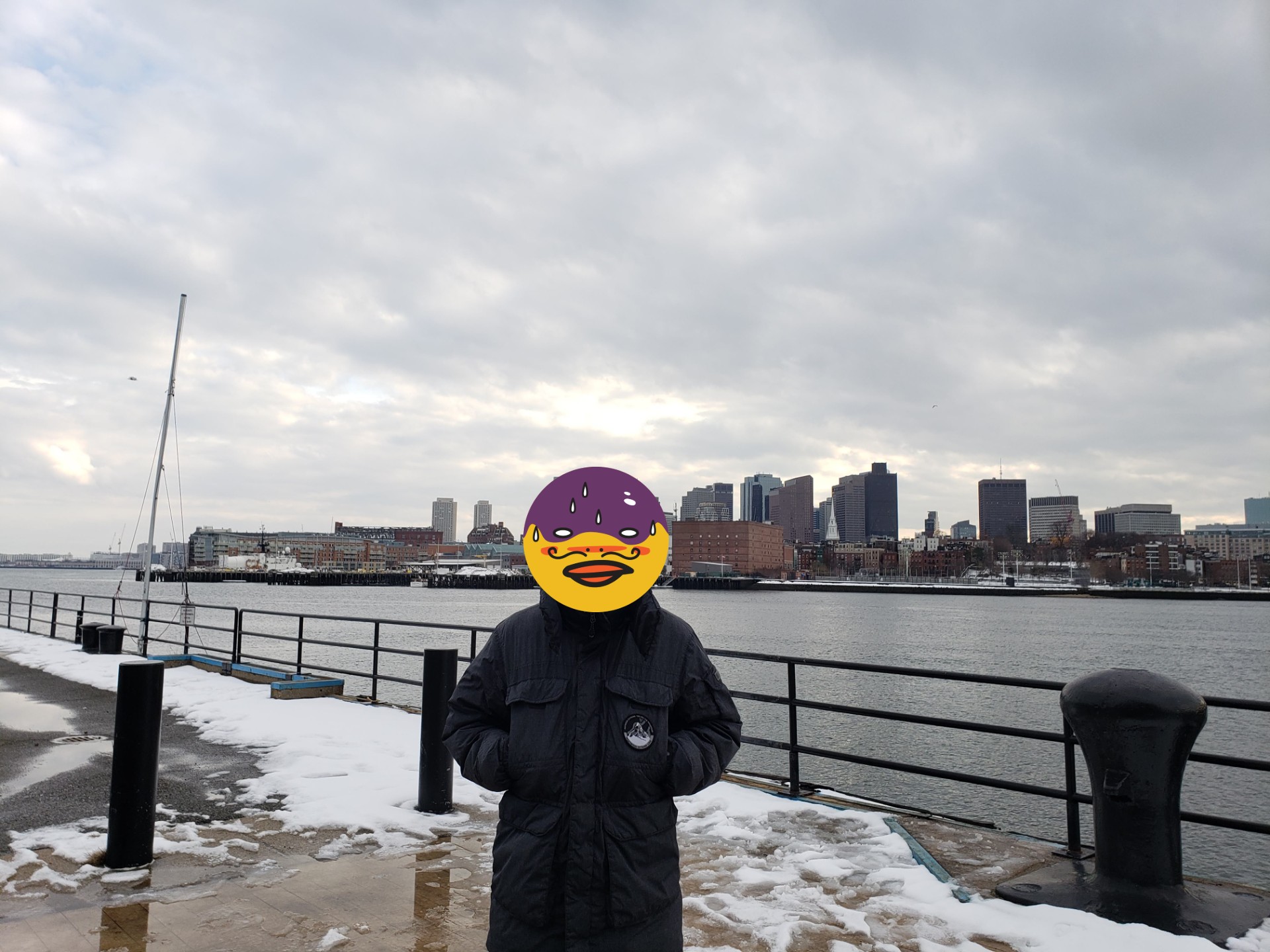 사실 페리 자체는 별 게 없었구요. 노선도 짧고 배도 작았어요. 하지만 이쪽 찰스타운 네이비 야드 쪽에서 바라보는 보스턴 다운타운이 너무 예뻐서... 사진을 찰칵찰칵 찍었습니다. 많이들 인생샷 남기더라구요. 저희는 추워서 사진에 성의가 없네요.