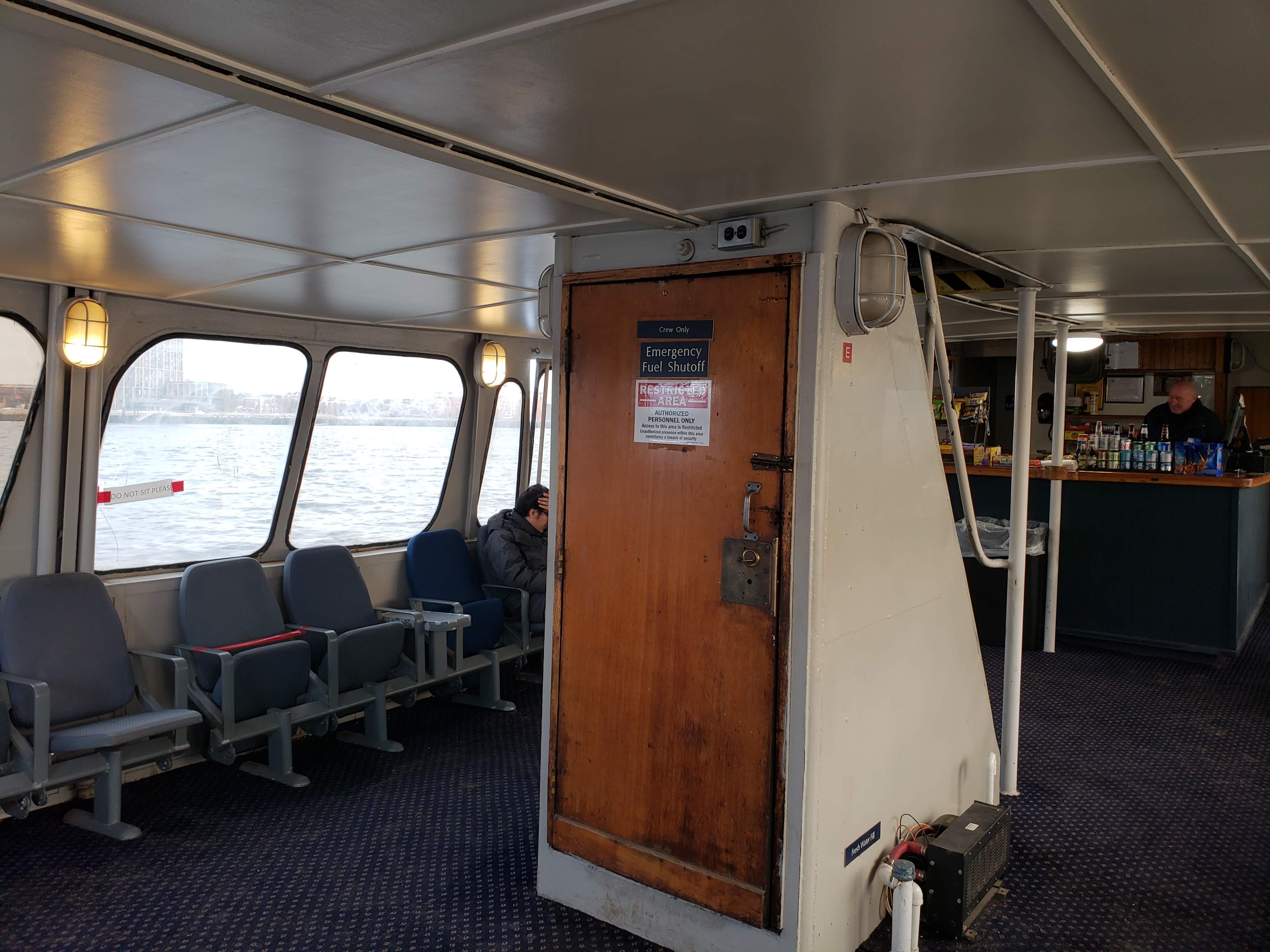 페리 내부에요. 날씨가 너무 추워서인지 밖에 나갈 수가 없구요. 페리 창문은 아크릴인데 기스가 많아서 창밖이 미세먼지 나쁜 날처럼 아주 뿌옇게 보여서 밖이 하나도 안보여요 ㅠㅠ