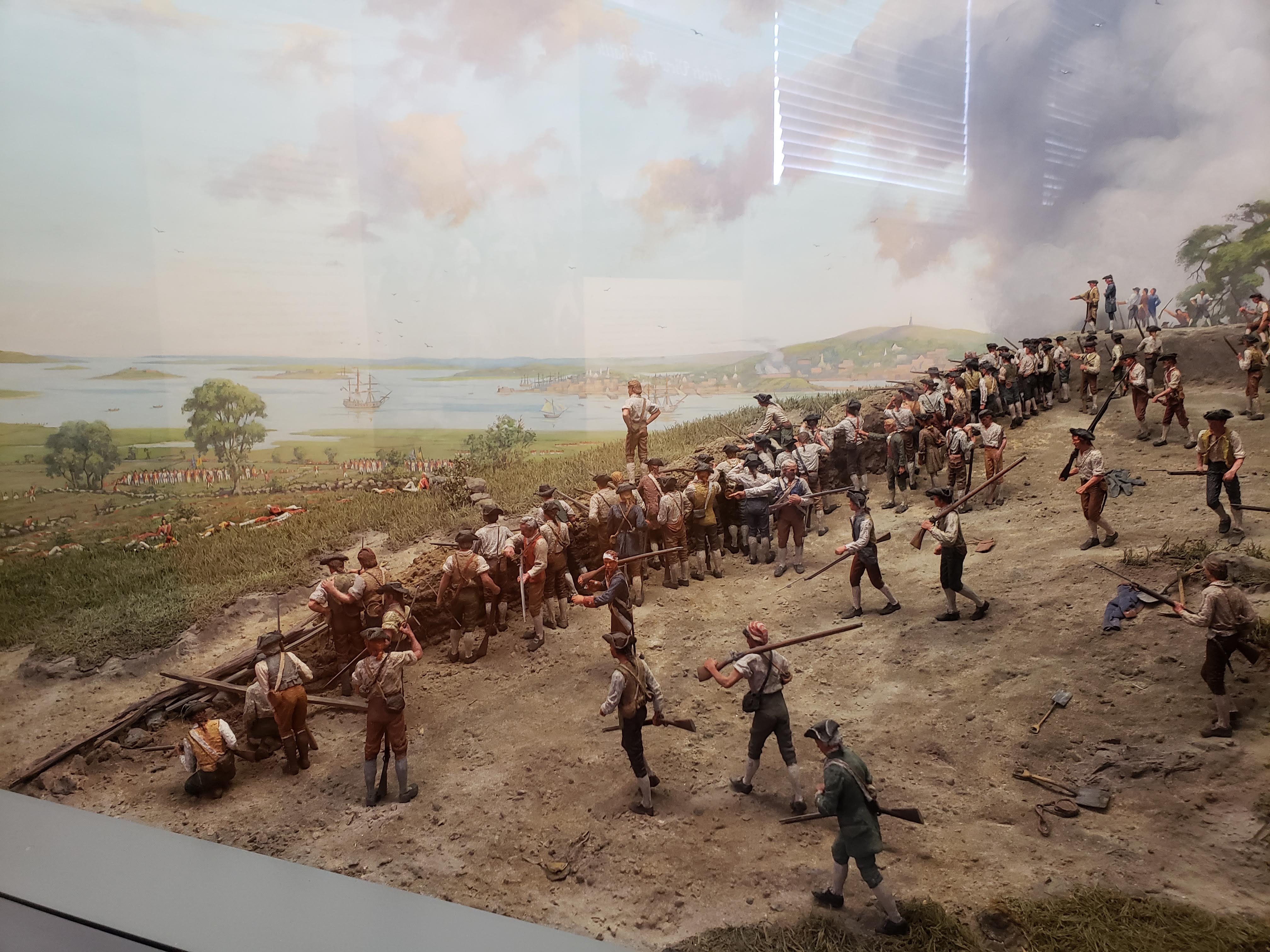 벙커힐 아래에 벙커힐 뮤지엄이 있습니다. 빨간 대영제국 군복을 입은 영국군과 민간인으로 구성된 양키들의 전투에 대해 더 자세히 알 수 있습니다. 입장료는 무료입니다.
