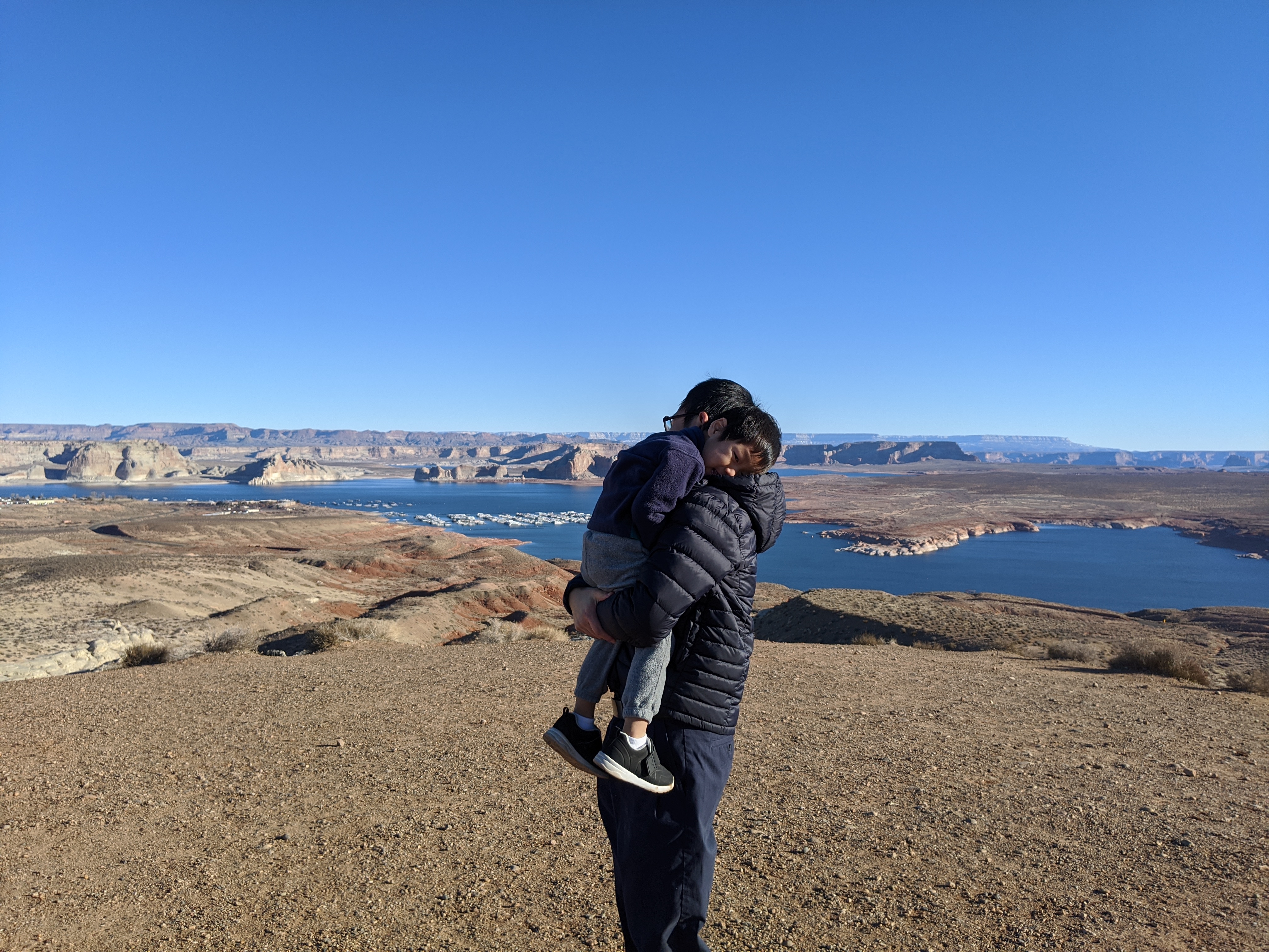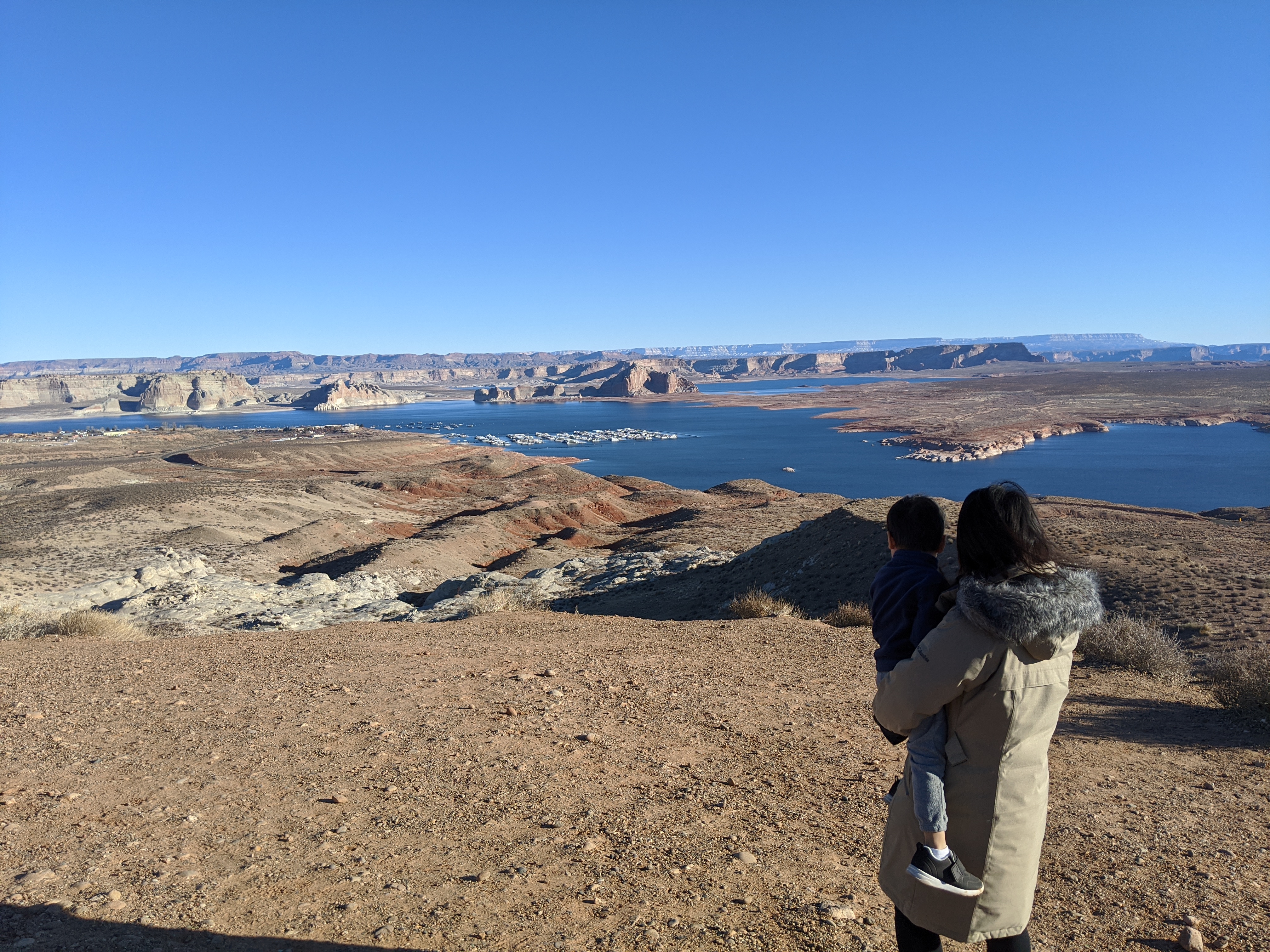 두번째날 앤탈로프 캐년과 홀슈밴드를 구경했고, 셋째날 모뉴멘트 밸리로 이동했다. 하지만 아이가 차 안에서 견디기 힘들 것 같아 기운을 빼게 해주려고 페이지에서 나가는 길에 글랜 캐년 댐과 파웰 호수에 들렸다.