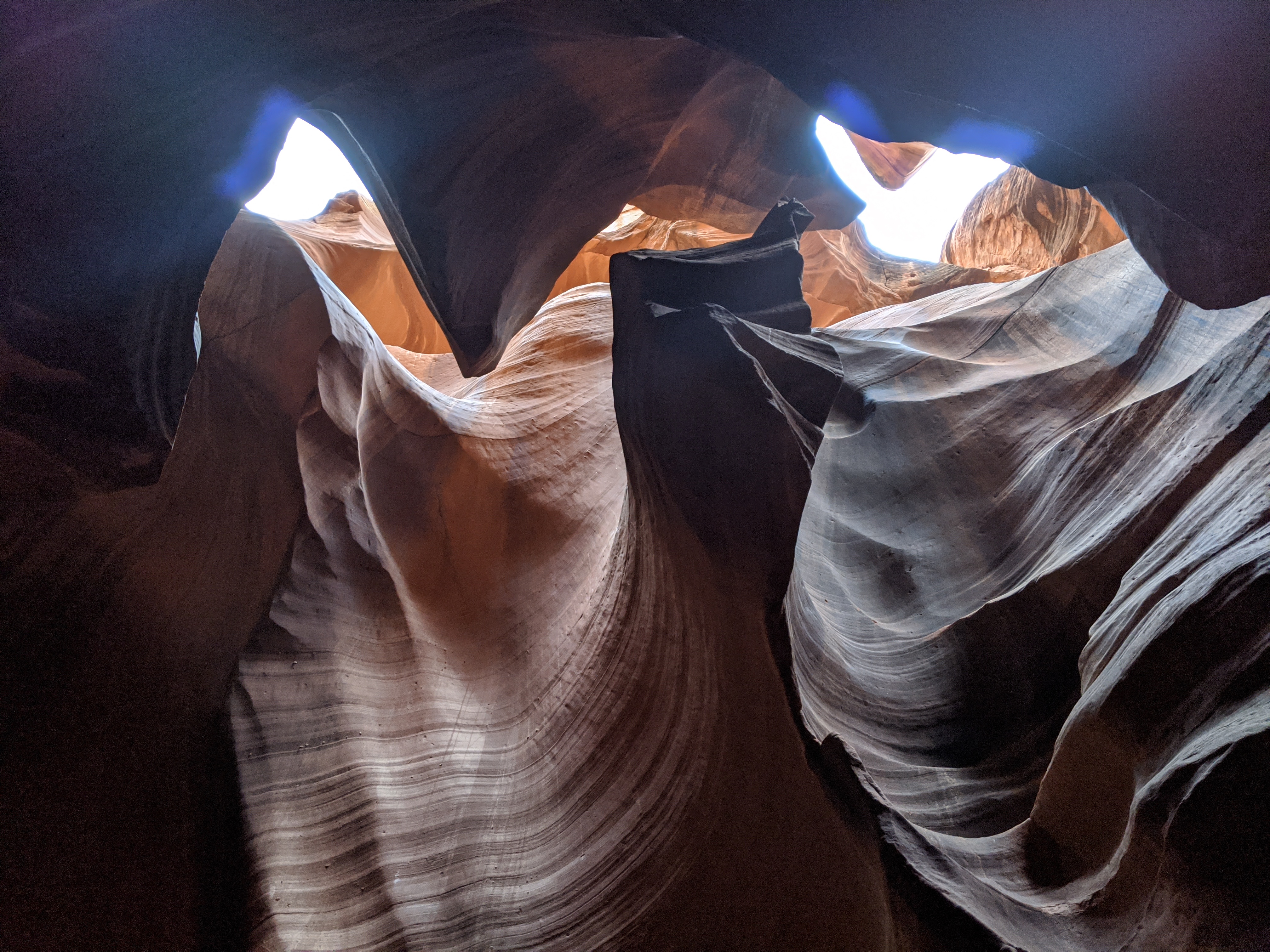 솔직한 저의 경험을 이야기하자면... 좋은 시간대를 예약하기 힘들다면 방문을 안하는 것도 괜찮다고 생각해요. 빛이 없으면 정말 컴컴한 동굴이거든요. 그리고 저 좁은 길에 엄청 많은 투어팀들이 계속 들어옵니다. 여유있게 사진 찍는 것도 쉽지 않아요. 무조건 투어가이드를 따라 다녀야하는데, 투어 가이드도 시간을 무한정 있을 수 없거든요. 왜냐면 계속해서 뒤로 새로운 팀들이 들어오니까요. 그리고 어퍼는 외길이라서 투어를 끝내고 나오는 사람들도 계속 지나갑니다. 저 좁은 길에 사람들이 다 우글우글 있는 거지요 ㅠㅠ 그래도 다른 투어팀이 한 기둥 뒤로 사라지면 그 곳에서 사진을 찍을 수 있도록 해주기는 합니다. 그치만 입장료도 비싼데... 과연 그 값을 할만한가?는 고민해볼 것 같아요. 색다른 곳을 원한다면 차라리 자이언 캐년이나 홀슈밴드가 낫지 않을까 생각합니다.