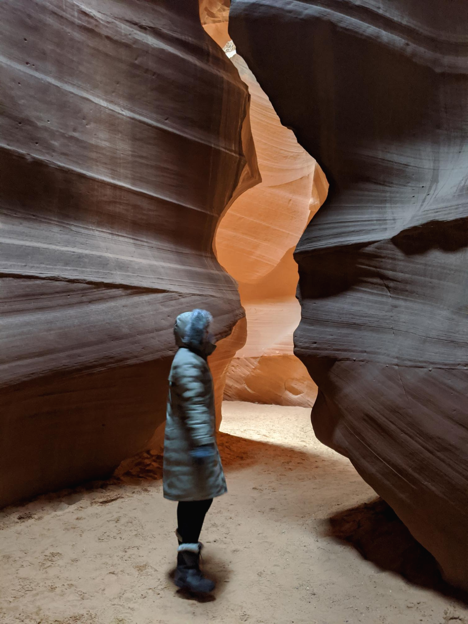 아쉽게도 투어 시간은 오전 8시였어요. 사실 앤탈로프 캐년은 빛이 들어오는게 아주 중요한데요. 저희는 겨울이었고 이른 오전이라 내부가 아주 캄캄했답니다ㅋㅋㅋㅋ